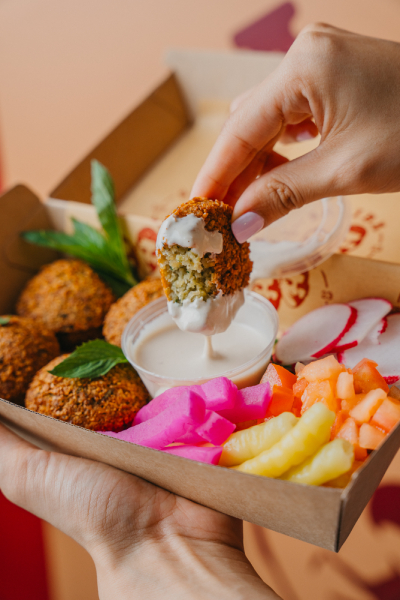 Our Falafel kiosk is a new addition to the vibrant and bustling community at The Cannery. Using traditional recipes and high-quality ingredients, we specialize in preparing delicious and healthy Falafels that are perfect for a quick lunch or snack. Located in a prime spot at The Cannery, our kiosk is easily accessible and provides a convenient option for customers who are on the go. We offer a variety of falafel options, including classic sandwich wraps, and plates for those that are gluten intolerant, as well as Falafel Skewers! As a business, we are passionate about providing excellent customer service and creating a welcoming atmosphere for our guests. We take pride in the quality of our food and always strive to ensure that every customer has a positive experience at our kiosk!
